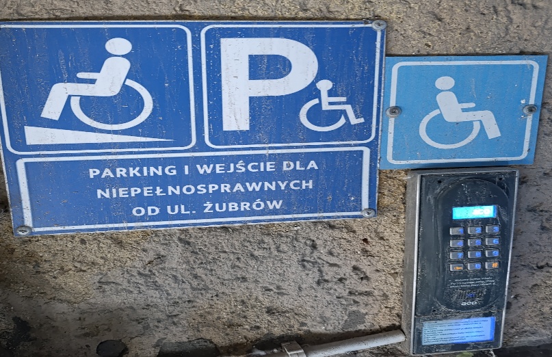 Przy wejÅ›ciu od ulicy Å»ubrów jest dzwonek przywoÅ‚awczy. Po jego użyciu na miejsce przychodzi pracownik portierni, który udziela pomocy osobom z niepeÅ‚nosprawnoÅ›ciÄ… dostać siÄ™ do budynku. W budynku nie ma windy, jednak dostÄ™pny jest schodoÅ‚az.